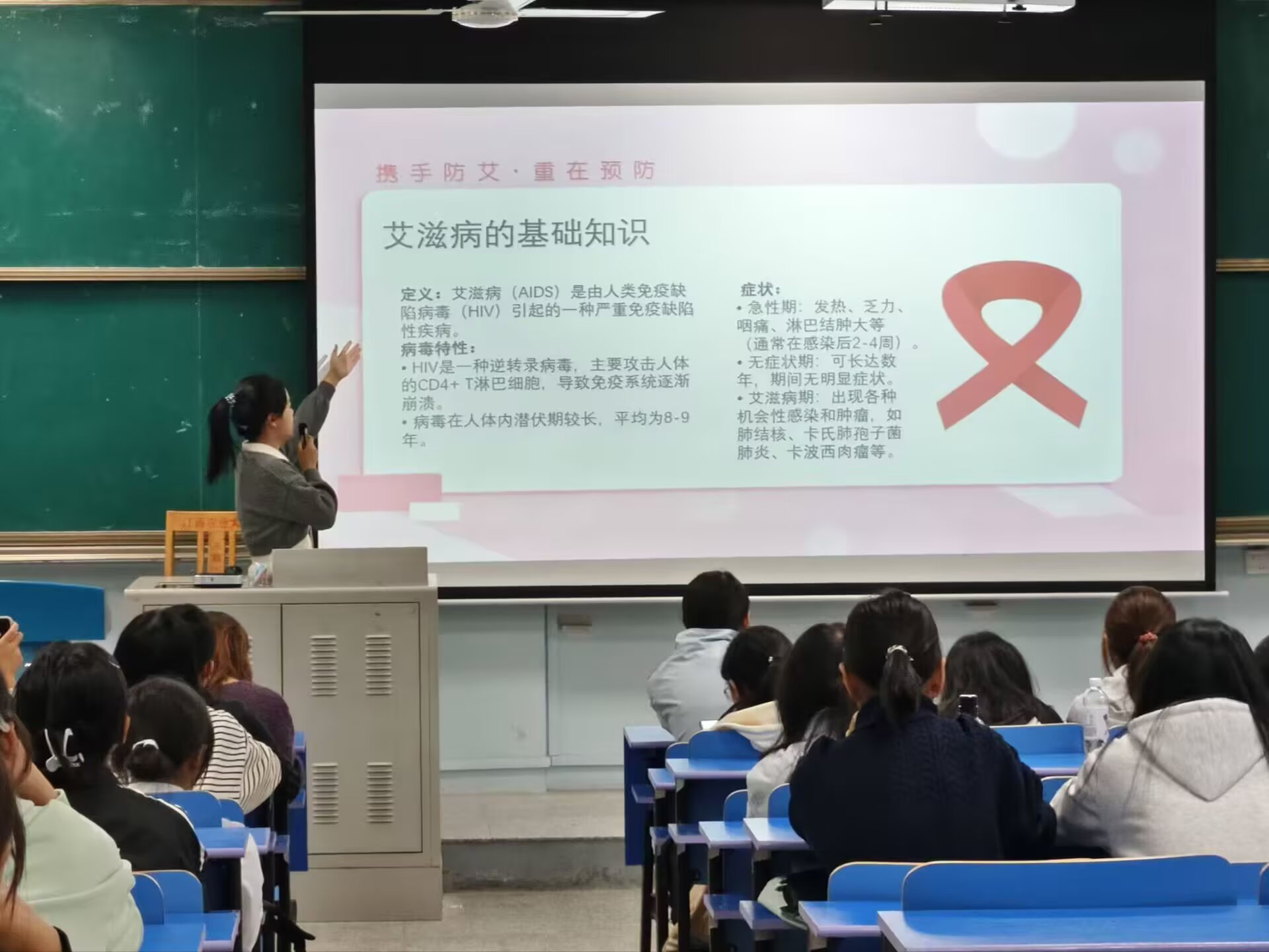 11月8日,我校红十字会学生分会在五教 202 教室举办防艾宣传 PPT 大赛,通过科普宣讲与竞技展示相结合的形式,普及艾滋病预防知识,传递对感染者的理解与关怀。